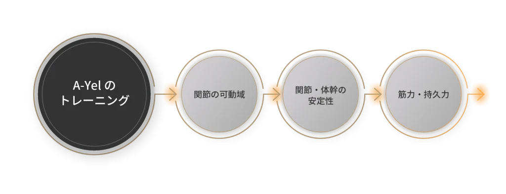 そのうえで、関節の可動性 →関節・ 体幹の安定性 → 筋力・持久力の順に段階的にアプローチ。無理のない範囲で、あなたの身体と生活に寄り添ったトレーニングを設計します。